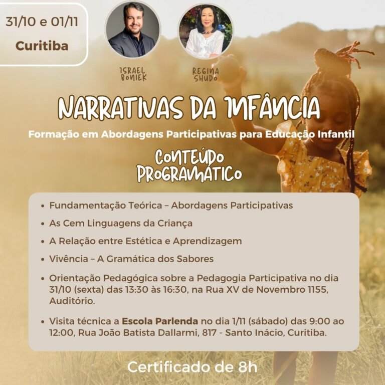 Um percurso formativo pensado para transformar o olhar e o fazer pedagógico na Educação Infantil, integrando teoria e prática com foco na escuta, nas interações e nos múltiplos saberes da primeira infância.